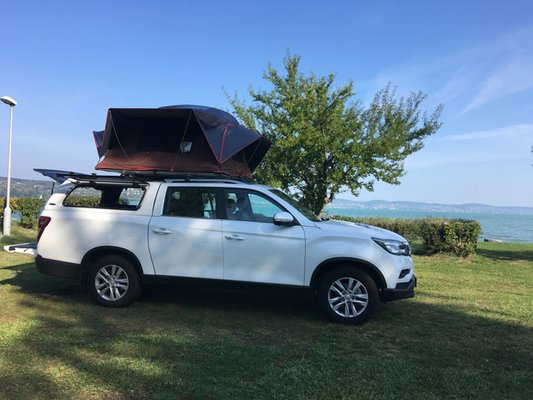 Őszre becsúszott egy iKamper Xcover tetősátor, amit természetesen a Mussóra dobtam fel, ez igen jó együttállásnak sikerült, jó kis Balaton körüli túra lett belőle. Pár apróság hibádzott csak, mint például a rögzítés, mivel a sima kereszt sínekkel csak a fülke és a doboz összekötésével lehetett megfelelően rögzíteni (minimum 75 centinek kell lennie a sínek között, a pickupon elöl és hátul is csak 65 cm körül van). Ez a földutakon okozhat gondot, amikor az alváz csavarodása miatt a fülkének és a felépítménynek külön kéne mozognia, és ha ezt nem teszi, valami idővel engedni fog.