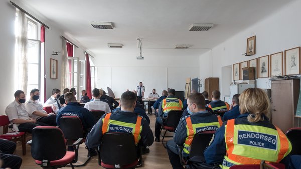 Az udvaron fiatal Audik, Mercedes B osztályok és néhány, nem annyira fiatal Opel Astra sorakozik. A péntek reggeli eligazításra sietek. Nyolc óra előtt az egész csapat egy alaposan szellőztetett emeleti teremben ül, mindenki teljes menetfelszerelésben és maszkban. Hamarosan ellenőrző akcióra indulnak, ahová én is elkísérem őket.