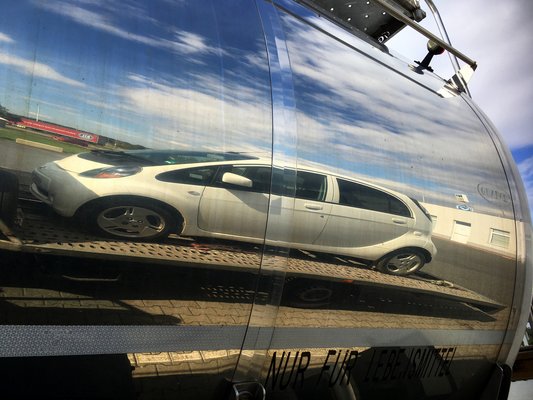 Arra számítottam, majd a bejáratnál kell várni, amíg az épp soron levők végeznek és az ügyintéző szólít. De ez sosem történt meg, mert az ügyféltérben nem volt senki, csak automaták, az egyik beszippantotta az euróimat, és mivel nem köpött vissza egyet sem, azonnal az eladó számlájára könyvelte. Azt hiszem, a banki ügyintézés küszöb átlépéstől küszöb átlépésig nagyjából három percig tartott. Visszafelé menet még megkérdezte emberünk, hogy mi a helyzet nálunk a járványüggyel, illetve hogy ugye akkor az állam nálunk is enyhíti a vállalkozások veszteségeit. Tiszta szerencse, hogy a bank közel volt, hamar a tréler mellett álltunk megint, és nem kellett a Kurzarbeit meg a 80%-os bértámogatás témáját feszegetni. Közben kiderült, hogy azért adták el a kis Citromot, mert új villanyautót vesznek második kocsinak, ugyanis nagyon bejött nekik az elektromos élet.