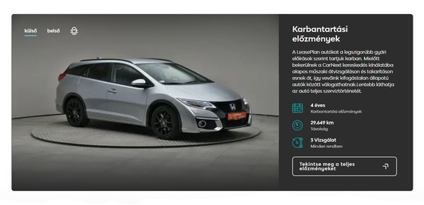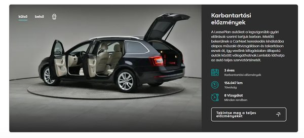 A flottaautók és lízingcégek járműparkja esetében ez adott, hiszen az autóknak egyetlen tulajdonosa van. A CarNext által kínált autóknál ez a tulajdonos a LeasePlan, ami minden releváns információt meg is oszt a vásárlóival. Ez viszont a tágabb értelemben vett használtautó-piacon sajnos a szabályozás miatt nem evidencia, hiszen a forgalmazók és a szakszervizek csak a tulajdonosnak kötelesek kiszolgáltatni az előzményeket, így a vásárló az ő jóindulatukra van utalva.