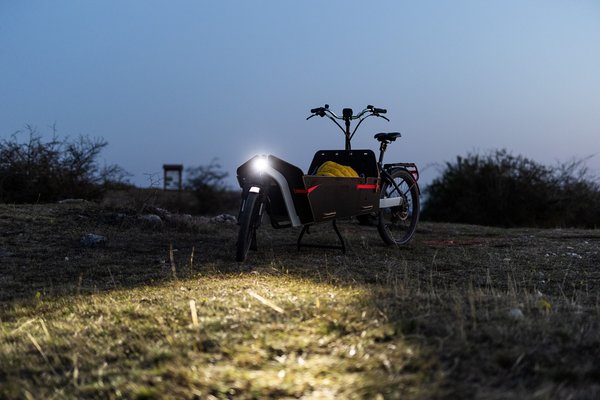 Az E-cargo egy olyan elektromos rásegítésű teherbicikli, amit arra találtak ki, hogy a masszív vázon kialakított raktéren - jelen esetben a kormány előtt kialakítva - bármit, akár gyerekeket is biztonságosan szállítsunk.