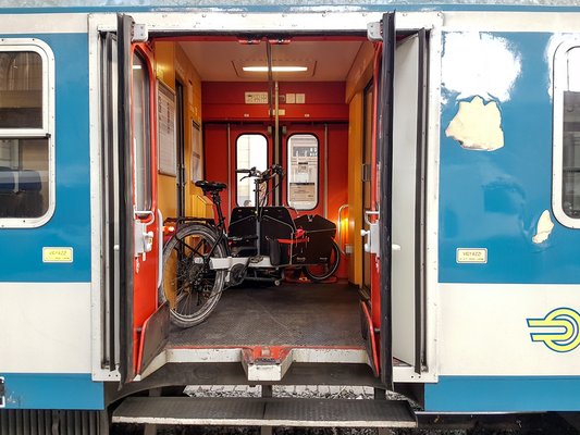 Másnap a munka végeztével hazafelé arra az IC-re, amire jegyet vettem, fizikailag nem tudtam felszállni az e-cargoval. A bringatároló egy felújított halberstadti vezérlőkocsi volt, ahol az eredetileg az ajtóban lévő középső kapaszkodó rudat, ki lehetett venni, de a hazai felújítás után már nem lehet kiszedni, így nem fértem be az ajtón, de a pécsiek nagyon kedvesek voltak, és aznap mindenben segítettek, öt ember azon tüsténkedett, hogy valahogy feljussak a vonatra, és végül ha azzal nem is, de a következő IC-vel sikerült. A kalauz is kedves volt, nála csak két jegyet kellett vennem.