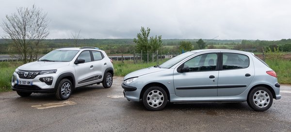 Ráadásul a Spring 970 kiló, vagyis nem egy nehéz darab a villanyautók között, csak 85 kilóval nehezebb a Peugeot-nál – mint látszott, tényleg csak keveset kap álló rajt esetén, és az a hátrány is a 206-os kipörgő kerekes rajtja miatt alakul ki, utána gyakorlatilag nem nő a távolság. Repülőrajtnál 30-ról már a Dacia veri meg a Peugeot-t. A videón nem szerepel, de 40-ről is gyorsítottunk egyet: ekkor a Peugeot közelebb van a nyomatéki maximumához, így kevésbé marad le, a 100 km/h tempó felé közelítve pedig már jobban megy a lassan kifulladó Daciánál.