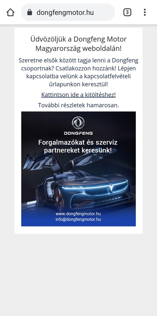 Mindenesetre az elmúlt hetekben a Facebookon könnyen olyan hirdetésbe szaladhatott az autós érdeklődésű ember, hogy a Dongfeng márkakereskedőket toboroz Magyaroszágon: a linken feljövő űrlapon csak pár adatot lehetett megadni. Azt nem árt tudni, hogy az autóimportőrségnek két lehetséges formája van: léteznek gyári tulajdonú és magánimportőrök. A zaftosabb piacot sok esetben az anyacég nem engedi ki a kezéből, de a Dongfeng szemszögéből kerekítési hibának is kicsi Közép-Kelet-Európa, így egy szlovákiai magánszemélyek tulajdonában lévő céggel szerződtek le.