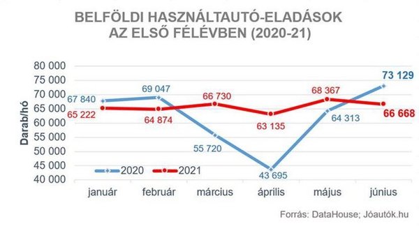 Miközben a használtautó-piacon a 2021 első hat hónapjában gazdát cserélő 395 ezer személyautó mennyisége közel 6 százalékkal haladja meg az előző év hasonló időszakában regisztrált 374 ezres értéket, az importált használt autók száma ugyanebben a periódusban 62 400 darab volt, ami 4 százalékkal maradt el az egy évvel korábban mért 65 000-es értéktől.