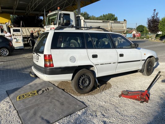 Nem sokkal reggel hat után járt az idő, nálam kivételesen se szerszám, se más nem volt, a hőmérő komótosan mászott egyre közelebb a 30 fokos osztáshoz, jól alakult a nap, na. A benzinkutas srác nagyon jó fej volt, kölcsönadta az Accordjából az emelőt. Én voltam az eszköz első használója, a hondás gőg furcsa toteme volt a nullkimlométeres emelő. Felrántottam az Astrát, majd lokalizáltam a problémát.