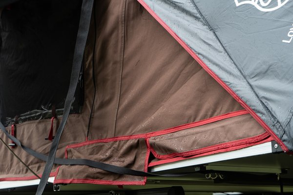 Aggódtam induláskor, de mire a 37-es útra értünk, már nagyjából megnyugodtam, hiszen a szél nem kapott alá és kanyarban sem dőltünk fel, csak az autópálya tempót kellett visszafogni miatta: 110 km/h a teteje a sátor leírása szerint. Ugyanott azt állítják, mindössze 57 kg a csukott doboz, tehát gyakorlatilag szinte bármilyen normál személyautóra rátehető biztonságosan, a Lodgy például 80 kilót elvihet – bőven határértéken belül volt itt minden, kérem.