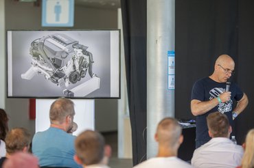 A PP fő terei azonban nem elég biztonságosak ehhez (No Burnout!), szerencsére a túlnyomó többség továbbra is elfogadja, és nincs jaszkarizás. Mégis, azért a tömeg azonnal odagyűlik, amikor beröffen egy-egy sztróker V8 vagy turbókkal jól megfújt wankel, ez teljesen érthető. Aki pedig nem csak hallgatni, kicsit jobban érteni is akarja a motort, annak szólt most a Mesterkurzus, mert Novoth Tibi és Ágó Béla álltak színpadra, és meséltek munkadarabokkal, ábrákkal illusztrálva a belsőégésű dugattyús erőforrás magánéletéről. Úgyhogy szerintem ez egyszerűen tökéletes volt, találkozunk veletek ugyanitt, a harmincharmadik alkalommal is, szeptember 18-án!