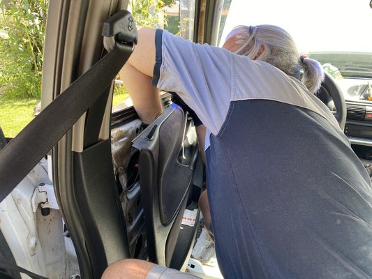 Nagy pillanatra készültünk: végre nem kifelé akartuk szedni a dolgokat az Astrából, hanem el akartuk kezdeni visszaépíteni. A kárpit és a beltéri műanyagelemek jelentős része a lakatolás miatt került ki, ezeket akartam visszaszerelni. De miért is menne ilyen könnyen, ugye?