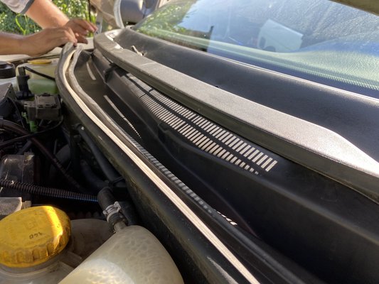 Az F Astra nem bonyolult autó, a két ablaktörlő között, középen van a pollenszűrő, mellette a vízgyűjtő tálca, jobbra, balra, valamint középen egy vízleeresztővel. Ha ezek eldugulnak, a víz átbukhat a pollenszűrő peremén és a szellőztetőmotoron át akár be is juthat az utastérbe. Megbontottuk, majd egy locsolókannával nagyjából negyven liter vizet csurgattam át a tűzfal különböző részein, az utolsó cseppig mind eltűnt, és nem a beltérbe.