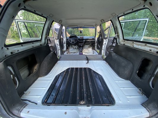 Az akcióban Bolla Gyuri segített, aki szerszámok mellett a kertjét is rendelkezésre bocsátotta a művelethez. Szépen kivakartam a csomagtartót, és rájöttem, hogy még sosem nyitottam ki a pótkerék üreg takarólemezét, ezért felpattintottam, hiszen ki kell porszívózni.