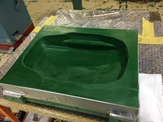 Kézi csiszolással előkészítettem őket a forma géllel való bevonásához. Mivel ezt is csak tanultam, tanácsként a kollégák azt javasolták, játszunk kicsiben. Semmi pre-preg karbon. Ahhoz ugyanis jellemzően nagy hőmérsékletű hőkezelés kell vákuum alatt a munkadarab végső szilárdságának eléréséhez. Így miden alapanyag úgy lett megválasztva, hogy kézzel visszük fel rá az epoxit, és maximum 80 Celsius fokon hőkezeljük. Közel sem ad olyan konzisztens és szép eredményt, mint a fejlettebb infúziós vagy pre-preg eljárások, de költséghatékony, és nem kell hozzá drága felszerelés.