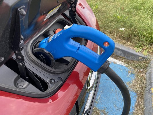 A chademo töltőszabványt használjuk, aminek a megfejtésére két változat is létezik: az egyik a charge de move, ami mozgás közbeni töltést jelenti, de mivel nem húzok magammal pörgő kábeldobot, nekem jobban tetszik a másik. A japán Ocha demo ikaga desu ka? Kérdés magyar fordításban annyit tesz Mit szólna egy kis teához? - utalva arra, hogy a töltés mindössze annyi időt vesz igénybe, amíg elfogyasztunk egy teát. A szabványt öt japán autógyártó hozta létre, és akár 62,5 kW töltési teljesítményt is tud, 500 volt egyenfeszültség mellett, 125 amperrel.