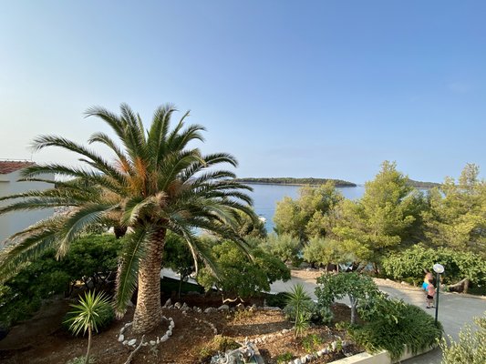 A borok szenzációsak: az első versenyző a Pošip volt, mely nagyon kellemes, illatos fehér bor. Nekem eszembe juttatta a felső polcos Irsaiakat, de ez azért egy más kategória még fölfelé, és persze más karakter. Ezt követte egy Sauvignon Blanc, amit a borok kapudrogjának neveznek, mert az mindenkinek ízlik - és valóban, ezt speciel Anti is imádta, aki bevallottan nincs oda a borokért (tényleg becseréltem volna egy fél karton Trappista sörre - Anti). Utóbbi nem helyi volt, ez Kaliforniában készült. Végül pedig kipróbáltuk az itteni specialitást a Plavac malit. Ez egy - a mi tokajinkhoz hasonlóan - egyedülálló helyi büszkeség, mely a természeti adottságok miatt máshol nem készíthető el ilyen minőségben. Egy elég erős, de annál finomabb vörösbor, mely erősen ajánlott minden borkedvelőnek. Akkor meg persze garantáltan többször is ki fogja próbálni, mert annyira jó. Igen, Horvátországban az összesen egy deci elfogyasztott bor még belefér.