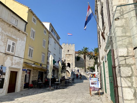 Ha már ott voltunk, visszafelé megnéztük Korcula városát is, ami állítólag Marco Polo szülővárosa - ezzel a velenceiek nem feltétlen értenek egyet, de mivel sem Marcót, sem pedig a szüleit nem tudjuk erről megkérdezni, mi nem foglalunk állást. Egyébként gyönyörű hely, kis-Dubrovniknak is nevezik.