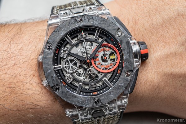 Náluk készül az egyik legdrágább autó-tematikájú karóra, az MP-05 LaFerrari, közel 150 millió forintos listaárával, és a 2019-ben bemutatott Classic Fusion GT is. A genfi autószalonhoz hasonló órás esemény utolsó, még békeidők beli Baselworld, 2019-es rendezvényén került a kezembe ez a darab. A Classic Fusion egy tényleg letisztult, az Hublothoz képest kifejezetten konzervatív darab. Szemben ezzel a GT változattal.