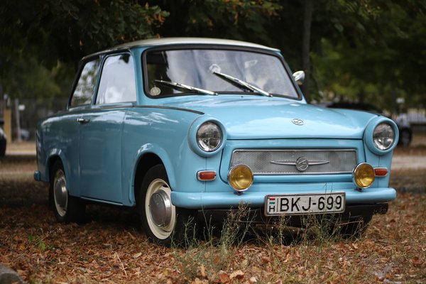 Egy Trabant láttán viszont rögtön kifogást emeltem, hogy a fehér tető nem stimmelhet az autóval egyező világoskék színre fújt lökhárítókhoz. (Tudtommal gyártottak Trabantot eltérő színű tetővel, de ahhoz krómozott lökhárító járt.) Megcsodáltam viszont a régifajta hűtőrácsot, és indexeket, valamint a gömbölyített lökhárítót, ami alapján korai modellnek gondoltam. Tulajdonosa azonban lerántotta a leplet saját művéről. Ezekkel az öltöztető elemekkel csak stílusosabbra próbálta varázsolni egyébként 1979-es születésű kétüteműjét. Amit már csak azért is megtehetett, mert Trabija még vékony ajtóoszlopos volt, ezt csak a nyolcvanas években változtatták szélesebbre.