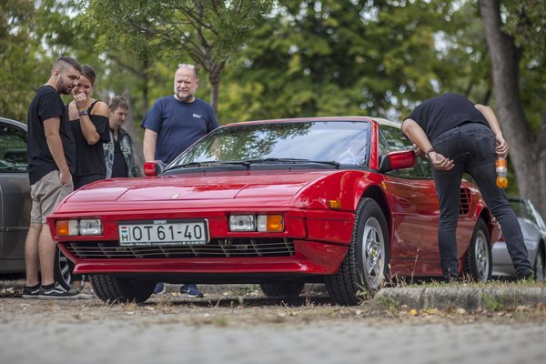 A körülötte állandósult tömeg alapján a közönségdíjat valószínűleg mégis egy derékig sem érő tűzpiros olasz szerezte volna meg. Nem a Maserati Biturbóról van szó, amit Bolla Gyuri a 32. PP kapcsán már bemutatott – bár őt ezúttal is megcsodálhattuk. Mostani hősünk nem Modenából, hanem 18 kilométerrel arrébbról, Maranellóból származik. Igen, egy Ferrari is tiszteletét tette a 33. PP-n, méghozzá egy eléggé ritka modell. Igaz persze, hogy egyik Ferrari sem épp tömegtermék, mint a hamburger, ennek megfelelően az 1980 és 1993 között gyártott Mondialból is összesen csupán 6 149 példány készült. Ezen belül a legkevesebbet, szám szerint 629 darabot a QV kabrió változatából gyártottak. Naná, hogy épp egy ilyet hozott el a PP-re tulajdonosa.
