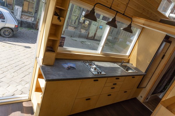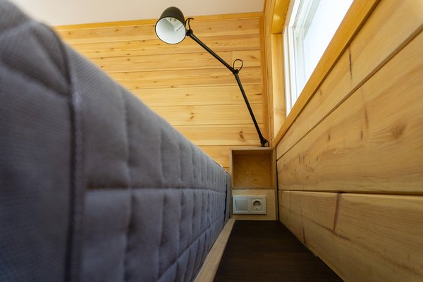 Ez volt egyben a legnagyobb kihívás is, hogy a tervezésnél pontosan kiszámolják, hogyan maradjanak a limit alatt úgy, hogy minden benne legyen, és a költségek se legyenek brutálisan elszállva. Ezért került bele például fenyő burkolat, mert lehetne sokkal könnyebb balsafa, csak éppen a költségek hirtelen két nagyságrendet ugranának, plusz pillanatnyilag a balsafa lambéria beszerezhetetlen tétel. A tervezés lentről kezdődött, először megvizsgálták, milyen tréler lenne a jó alap. Kézenfekvő lett volna a holland Vlemmixtől vásárolni egyet - ez egy családi cég, mindenféle utánfutót gyártanak, évente nagyjából 20 ezer darabot. Az ő tiny house alapjuk 750 kiló, ami egy síkplatós futó, és lényegében bármi építhető rá. Norbi végül hosszas számolgatás után inkább megkeresett egy hazai utánfutógyártót, megvásárolta az egyik típusuk tervét, amit módosított, és azóta gyártja is.