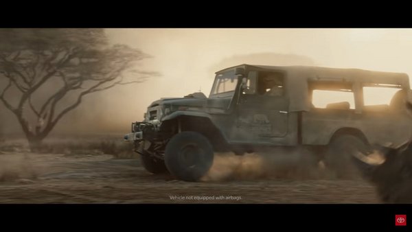 A videó egy Mad Max: Fury roadra hajazó világban indul, ahol egy elsőgenerációs 4Runner a főszereplő, innentől kezdve szcenáriókból szcenáriókba ugrik a néző, ahol mindig épp az adekvát modell rongyol: FJ45 Land Cruiser a szavannán, J70 Land Cruiser Ausztráliában, Tundra az amerikai erdőtüzek közepette, Tundra a NASCAR versenypályán, de bónusznak még egy MCFLY rendszámú Hilux is feltűnik.