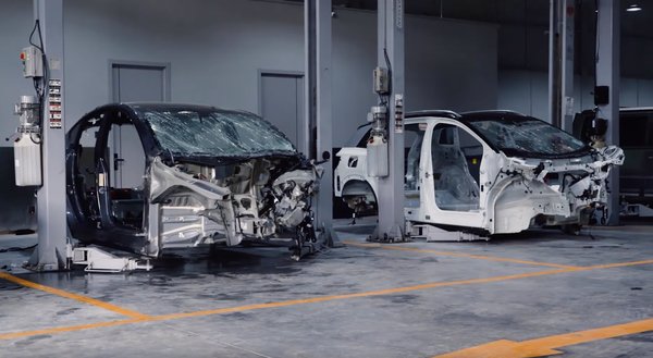 A kiváló eredmények részben abból jönnek, hogy nagyon jól kitalált és erős szerkezetű autók a Teslák, másrészben viszont egyszerűen abból, hogy eleve elektromosnak tervezték őket, és a villanyautó alapfelépítése sokkal alkalmasabb arra, hogy biztonságos lehessen. Rögtön ott kezdődik, hogy nincs egy pár mázsás motorblokk az orrban, amit valahogy kint kéne tartani az utastérből karambolkor, hanem az egész lehet egy csodásan, programozottan deformálódó energiaelnyelő gyűrődési zóna. Aztán az utasteret még minden irányból merevíti az irtó masszívra épített akkucsomag. De villanyautót mára nem csak a Tesla gyárt, hanem például a VW is, és a minap egy laborban kőkemény deathmatchet vívott az ID6 és Model Y.