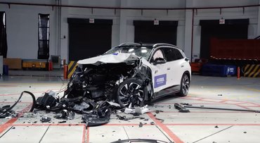 A Tesla Model Y családi crossover az idei év legjobban fogyó villanyautója. A mi összehasonlító tesztünkben megverte a VW ID.4-et. A töréstesztben a bosszút a dagadtabb ID.6-ra bízták, ami az ID.4 nyújtott, hétszemélyes változata, de a karambol szempontjából (a B-oszlop előtt és műszakilag) teljesen ugyanaz a két autó. Némi előny, hogy a VW negyed tonnával nehezebb, de ez a törés szempontjából mindegy (mindkét autó törésére kihat mindkettő tömege), az utasokra nehezedő lassulásban jelent némi előnyt (a könnyebb autó nagyobbat lassul, így az övfeszítőknek, légzsákoknak ügyesebben kell lelassítaniuk az előrevágódó embert).