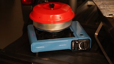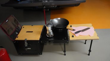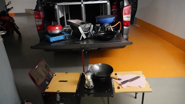 Sokan voltak kíváncsiak, milyen az AIOKS láda. Nos egy ekkora autóban annyira nem praktikus, én ezt egy kisebb kombiban vagy a hasonló méretű autóban látom értelmesnek. Amúgy minden főzéshez szükséges motyót (és persze a kávét) elnyelt, a főzőlapok meggyőzően működnek, bár szél esetén nem árt egy árnyékoló. Ami fura, hogy a két oldalán van a szabályozó és kicsit kényelmetlen, hogy minden összecsukáskor le kell szedni a tartályt, gondolom ez utóbbi biztonsági okokból lett így tervezve.