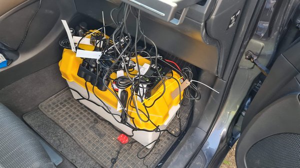 A házilag barkácsolt akku rendszer kiválóan tette a dolgát, végigtolta mindenféle töltés nélkül a hétvégét, ha kellett, telefont töltöttünk róla, a hűtő hűtött és bónuszként volt egy vendégszereplése is, amikor 10 fedélzeti kamerát kellett egy autóba üzemeltetni.