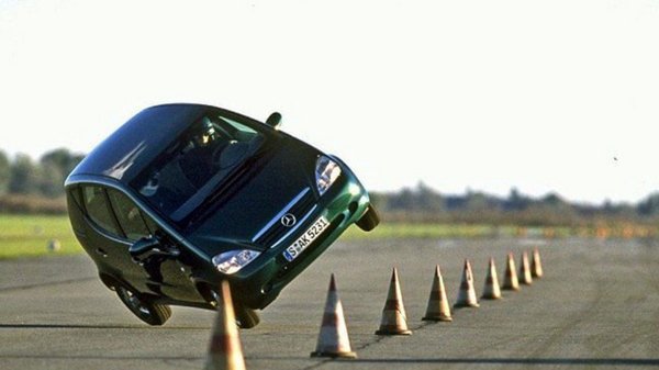 Ez a „megbukás” nem azt jelenti, hogy felborul. Az A osztály-borogató újság, a Teknikens Värld azóta is szorgosan tesztel, és meghúztak egy sebességet (72 km/h), ami alatt megbukott az az adott típus, de azért ezt kezeljük fenntartásokkal. Egyrészt úgy tűnik, hogy az összes teszten valódi embereket használnak terhelésnek, pedig itt egy-két km/óra különbséget lazán okozhat akár az is, hogy mekkora skandináv melyik ülésen ül, milyen meleg épp az út felszíne és mennyire voltak melegek az abroncsok. Ugyanúgy összehasonlíthatatlanok az eltérő helyszíneken mért eredmények.