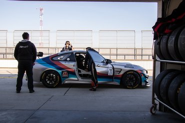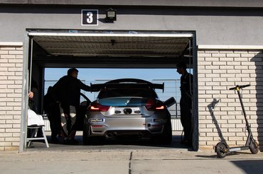 Autóba ülni szintén szervezést igényel, hiszen versenypályára kiköltözni egy napra szerteágazó infrastuktúrát kíván. A Car Competition Racing Team csapata viszont megcsinálta, és egy tesztnapra kihozta a BMW M4 GT4 versenyautót a Budapesttől 200 kilométerre eső, Ostffyasszonyfa mellett található Pannónia-Ringre. Ez a bő 4,7 kilométeres pálya párszáz méterrel hosszabb a Hungaroringnél. Világosan látszott, hogy merre kell kanyarodnom a boxok mögötti gigantikus betonplaccon, mert egyetlen garázsnál álldogáltak autók és a furgon mögé kötött zárt tréler, amiben az M4-es utazott.