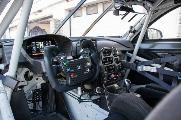 Lehet, hogy baromi nehéz, de ezt azzal kompenzálja, hogy rettenetesen erős a háromliteres, sorhatos turbómotor, mely szintén egyezik az utcai változat blokkjával, csak nincs rajta a dizájnolt műanyag burkolat. A teljesítménye változó, a BMW több mint 470 lóerőben adja meg, de ez az adott verseny szabályainak megfelelően változik. A karbon műszerfal mögül ágaskodik ki az a szoborszerűen megtervezett, fémházas USB stick, melyen az autó különböző programjai vannak. Van ezekből az egyébként meglepően súlyos, rendes hideg fémérzetű pendrive-okból ezüst, fekete és piros, attól függően, hogy szükség van-e 500 lóerőnél nagyobb tűzerőre.