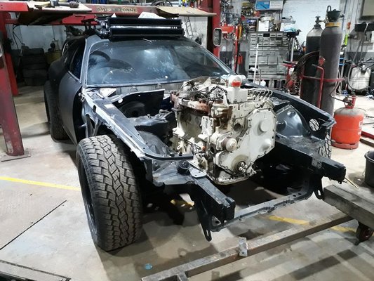 A motor egy továbbfejlesztett FV432 típusú APC-ből (páncélozott csapatszállító) származik. Abból lehet sejteni, hogy nem hétköznapi erőforrás, hogy kilométer helyett munkaórát számlál - a vásárlásakor 597 órát mutatott. A váltó az eredetileg full-size pickupokba szerelt ZF S5-47 (ötgangos kézi), a diffi pedig egy LS400-ból származik. Hogy rendesen elférjen a sorhatos, Airmaxxx 580-as levegős futóművet és elöl 30 colos, hátul 32 colos terepgumikat kapott az autó.