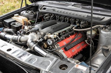 6000-nél 326 lóerőt ad le 3217 köbcentis, 90 fokos hengerszögű, dupla vezérműtengelyes, hengerenként négyszelepes motor, amit két vízhűtéses IHI turbófeltöltő hergel. Szívszorítóan mérnöki mesterműnek néz ki, tényleg gyönyörű az egész géptér, hogy középre futnak be az ezüst csövek, két oldalt pedig ott vannak a direktszűrők és ragyognak a piros szelepfedelek. Amolyan rövid és tömzsi a Shamal, mint a kimetszett közepű Audi Quattro, mert a Maserati mérnökei úgy gondolták, hogy a Spyder alapjait adó rövidebb - 2,4 méteres - tengelytávval teszik izgalmassá az első tengelyen ülő biturbó V8-ast.
