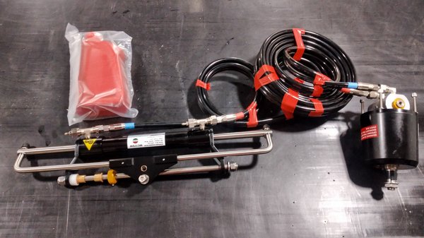 Ha már a bovdenes megoldással nem lehet biztonságosan forgatni a motort, mert a motor túl nehéz, vagy a tolóerő annyival megnő, hogy nehéz kitéríteni a motort oldalra az egyeneshez képest, akkor a kormányzás általában hidraulikus. Itt a kormánykerékkel egy hidraulikaszivattyú tengelyét hajtjuk, hátul a motort pedig egy munkahenger mozgatja jobbra vagy balra. a kormányzáshoz az erőszükséglet kicsi, a motor nem akarja visszafordítani a kormánykereket zavaró mértékben. Egy ilyen hidraulikarendszer mérettől, gyártótól, motorok számától függően 250-300 ezer forinttól indul, már ami beépítésre érdemes minőségű. Szemetet mindenből lehet kapni, de nem érdemes mindig a legolcsóbbal kezdeni.