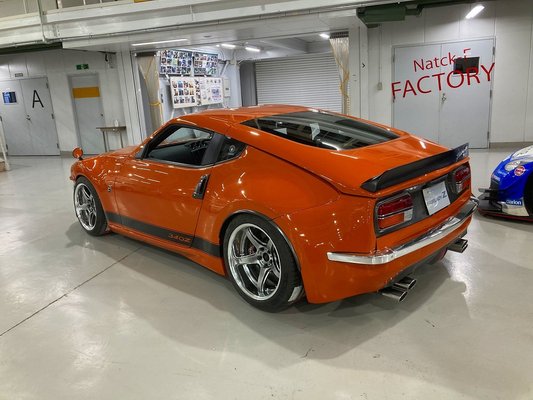 Az elgondolás teljesen rendben van, hisz az új, 2022-es Z is ugyanezen gondolat mentén jött létre, a kivitelezés azonban a 340Z esetében némiképp sutára sikerült - ezt tudjuk be az építők fiatal korának: a fényszórók, a szögletes indexek, a klasszikus, sárvédőívre telepített tükör is hibátlan, az S30 eredeti arányai, de a hosszú motorháztető valahogy hiányzik az ikonikus orr mögül. Hátul is hasonló a helyzet, a függőleges, szürke hátfal önmagában kellemes látvány, a csomagtértető viszont szokatlanul vastag, amin a spoiler is olcsónak hat. Kiegészítőkkel nem spóroltak az építők, elöl-hátul króm díszléceket, Michelin Pilot Sport 4 gumikkal felszerelt 18 colos felniket és két duplakipufogót is kapott a 340Z.