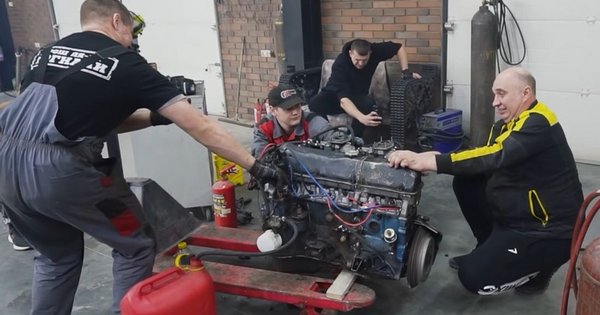 Márpedig Vladiszlav Barasenkovékat úgy ismerjük, hogy ha valamit a fejükbe vesznek, azt meg is valósítják. Fogtak hát két sima, négyhengeres Lada-motort, 2101-esekből származót, és elkezdték összeházasítani. A matek egyszerű: 4+2=6, tehát az egyiket meg kellett felezni ahhoz, hogy kijöjjön a számtan. Hogy akkor miért nem rögtön V8? Azt mondják, az nem lett volna ennyire látványos.