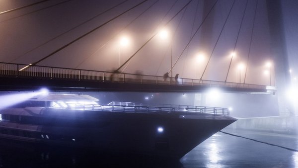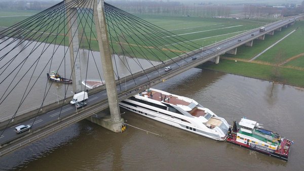A Galactica nevű, körülbelül 35 milliárd forint értékű szuperjacht Hollandiában szorult be a heusdeni híd acélszerkezete alá a magas vízállás miatt.
