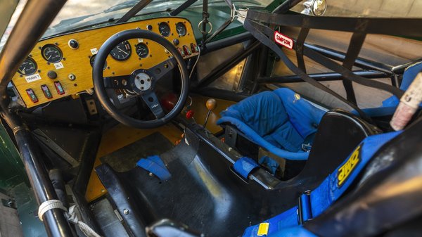 Kipakolták a teljes belteret, az ajtókat is átalakították, hogy a felső részt lenyitva lehessen beszállni az autóba. Oldalüvegek nincsenek, csak háló a vezetőülés mellett, az utastér pedig amolyan tákolt és lecsupszított hangulatú. A Stack műszerek egy fa deszkában kaptak helyet, az ülések helyére pedig fix kagylókat szereltek.