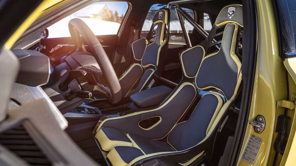 Inkább csak a matricázás teszi látványossá a sárga S3-ast, igazán a beltere lett ütős. Kipakolták belőle a felesleget, bukócsövet szereltek az S3 utasterébe és két karbon kagylóülést. Drift mód ugyan még ettől sincs benne, de az összkerékhajtás és a hó sosem volt rossz kombináció.