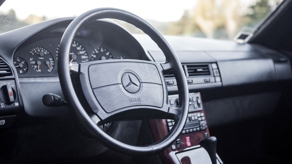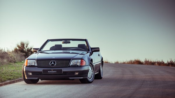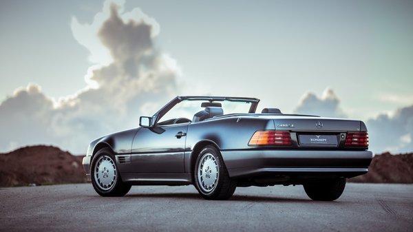 Mert az SL ekkorra már tényleg nagyon nem az a sportautó volt, mint a sirályszárnyas, hanem egy kellemes gran turismo, nyitható vászontetővel, kényelmes bőr ülésekkel és klímával, Bruno Sacco tömbszerű csomagolásával a W124-es rövidített padlólemezén. Még mechanikus kilométerszámlálója van, a korszakra jellemző sárga búrájú irányjelzői és a jellegzetes, bordázott hátsó lámpák, melyek akkor is láthatóan világítanak, ha az autót már összekoszolta az utazás.