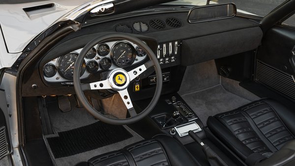 1971 decemberében készült el az ezüst Ferrari, ami a Luigi Chinetti Motorson keresztül 1972 júniusában érkezett meg Amerikába. Pollack egykori autója gyárilag klímával felszerelt és mérföldben mérő műszerek figyelnek az óracsoportban, a belterét pedig fekete bőrrel kárpitozták. 4,4 literes, 60 fokos hengerszögű V12-es motorja közel 350 lóerőt ad le 7500-as fordulaton, ami mellé több mint 430 Nm nyomatéka van. Ezzel nagyjából 5,5 másodperc alatt gyorsul 100-ra és megfutja a 280 km/órás sebességet is.