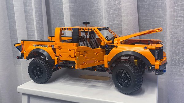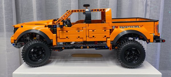 A többi Technic-nél azt szoktam meg, hogy a csicsázás rész a vége felé kezd nagyon bedurvulni, hát a Raptor már második zacskó csomag felénél kezdte elnyerni a majdnem végleges formáját. Az 1349 darab alkatrész vészesen fogyni kezdett. És már most sokkal jobban nézett ki, mint amit a doboz alapján vártunk volna. A törékenynek látszó váz alatt a komoly munka kezdett egyre jobban alakot ölteni, kétségem se volt afelől, amikor a hátsó felfüggesztéshez értünk, hogy ez tényleg megérett a felnőttkorra. Tökéletesen lemásolták a szerkezet mechanikáját, miközben arra is figyeltek, hogy az egész rendszer tökéletesen illeszkedjen a kerékjáratokhoz. Ezen a ponton már több mint méretes darabnak számított, érzeted a súlyát, szinte láttad a végleges formát. Ugyan nincsenek olyan szép ívei, mint egy Bugattinak, vagy egy Porschénak, de az esztétikai hiányosságot bőven pótolja az a nyers erő, amit még ebben a kissé esetlen formájában is közvetít az építő felé.