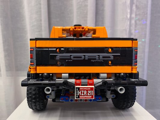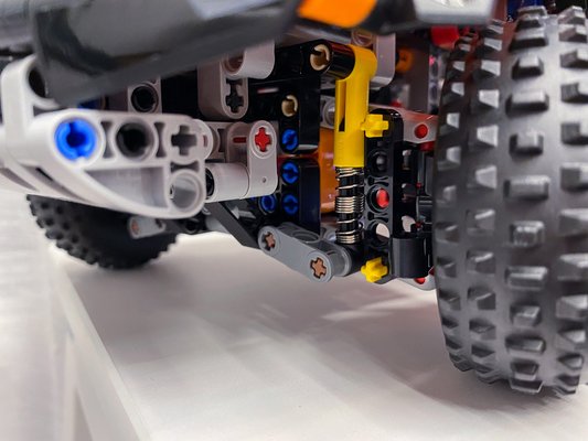 Ahogy rendületlenül haladtunk tovább, szépen lassan kezdett kibontakozni a monstrum alakja, megláthattuk, milyen komolyan vették a mérnökök, hogy tényleg hasonlítson felépítésben egy eredeti F-150-hez. Eljátszottunk a felfüggesztésekkel, miközben apró információ morzsákkal láttak el minket a tervezők: az igazi Raptor alatt a FOX Live Valve technikája figyel, 3.0-ás Internal ByPass lengéscsillapítókkal, amelyek különleges képessége, hogy intelligens módon, valós időben alkalmazkodnak a terepviszonyokhoz, azaz aktív mozgásban vannak, hogy azonnal optimalizálják a kezelhetőséget, a komfortérzetet, valamint az ellenállást. Ennek eredményeképp egy kellemes, kontrollált off-road élményt kapunk. Szinte hihetetlen, hogy képesek voltak még ezt is beépíteni egy Lego mozgásába.