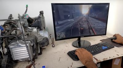 Aki játszott már számítógépes játékkal, annak szinte biztosan megfordult a fejében, hogy milyen baromsággal lehetne fokozni a játékélményt, de az esetek túlnyomó többségében ez nyilván megmarad gondolatkísérlet szintjén. A Teenenggr YouTube csatorna üzemeltetője ennél messzebbre ment: nem csak hallani, érezni is akarta a motort, ezért gyorsan kicsapott az asztalra egy négyütemű blokkot, és némi ügyes programozással élethűvé tette a fordulatszámokat is.