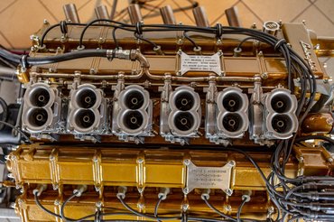 A most eladásra kínált L900-as 2016-ban esett át teljes felújításon, egy-egy olasz nyelvű plakett mutatja a gyújtási sorrendet és a szezon utáni karbantartási teendőket. Hat ikertorkos Weber 44 DCNF karburátor és egy Daytona vízi használatra szánt váltó jár hozzá, a blokk aranysárga fényezése viszont talán már egy kicsit túlzás, de biztos van olyan környezet, amihez illik. Jelenleg 32 ezer dolláron (~10millió forint) áll a licit, én azt mondom, csapjon le rá egy honfitárs, a kutyák királya lehetne vele a Balatonon.