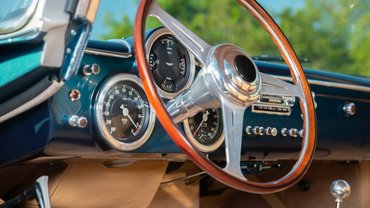 Utasterét ugyanis mindenhol bézs bőrrel kárpitozták, a csomagokat barna övek rögzítik a helyükön, nem csak kívül, de belül is rengeteg krómot használtak a karosszéria színére fújt műszerfalon. A háromküllős fakormányon túl gyönyörű műszerek vannak, mellette pedig Becker Mexico rádió.