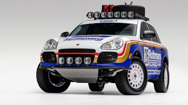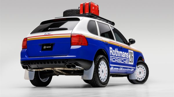 Rothmans festés díszíti a karosszériát, mint a legendás versenyautókét és tagadhatatlanul jól áll neki a pirossal és arannyal fűszerezett kék dekor. A Cayenne Turbo nem kőkemény terepjárónak született, de egy kis emelés, a megfelelő gumik és a sorakozó szúrófények miatt könnyű elhinni neki.