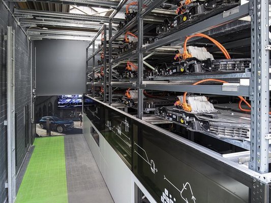 20 darab Audi e-tron tesztautó akkuja szolgál az EUREF berlini kutatóközpontjában Fotó: automotivemanufacturingsolutions.com