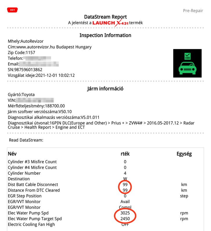 A sérülésmentes, gyári fénnyel hirdetett autót több helyen is fújták. A hirdetés hazudik. Az akkucellák között van eltérés, láttam már jobbat is. Az elektromos vízpumpa a target speed és a valós sebesség alapján azonnali cserére szorul. Élő hibakód nincs, de ez nem csoda, 99 kilométerrel ezelőtt törölték a hibatárolót. Nem teljesen, mert három légzsákkal kapcsolatos tárolt hibakódunk azért van. És a kérdés ilyenkor mindig az, hogy mit törölhettek ki?