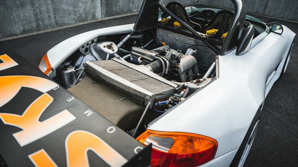 1996-ban jelent meg a Porsche belépőmodellje, a kétüléses és középmotoros Boxster, mely egészen a Cayenne szabadidő-autó érkezéséig a legkeresettebb modell volt. Mostanra az első generációs Boxster nem a legolcsóbb Porsche - hiszen az a Cayenne -, de ez lett a megfizethető sportautó, amiből nem csak érintetlen példány lehet, hanem ilyen szétreszelt pályagép is.